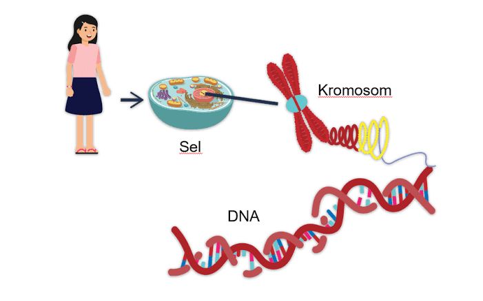 Masing-masing kromosom eukariot mengandung satu heliks ganda DNA linear yang, pada manusia, jumlahnya kira-kira 1,5 × 10 pangkat 8 pasangan nukleotida. Jumlah ini relatif lebih banyak daripada panjang kromosom yang terkondensasi. Jika sepenuhnya direntangkan, satu molekul DNA tersebut panjangnya dapat mencapai 4 cm, ribuan kali dibandingkan dengan diameter nukleus sel-belum lagi memperhitungkan DNA dari ke-45 kromosom lain pada manusia. Di dalam sel, DNA eukariot berpasangan secara tepat dengan banyak protein. Kompleks DNA dan protein ini, disebut kromatin (chromatin), bisa muat di dalam nukleus berkat sistem multitingkat pengemasan DNA yang rumit. Pandangan kita saat ini tentang urut-urutan tingkat pengemasan DNA dalam kromosom dituangkan dalam Peraga 16.21. Kromatin mengalami perubahan derajat pengemasan secara besar-besaran selama siklus sel.